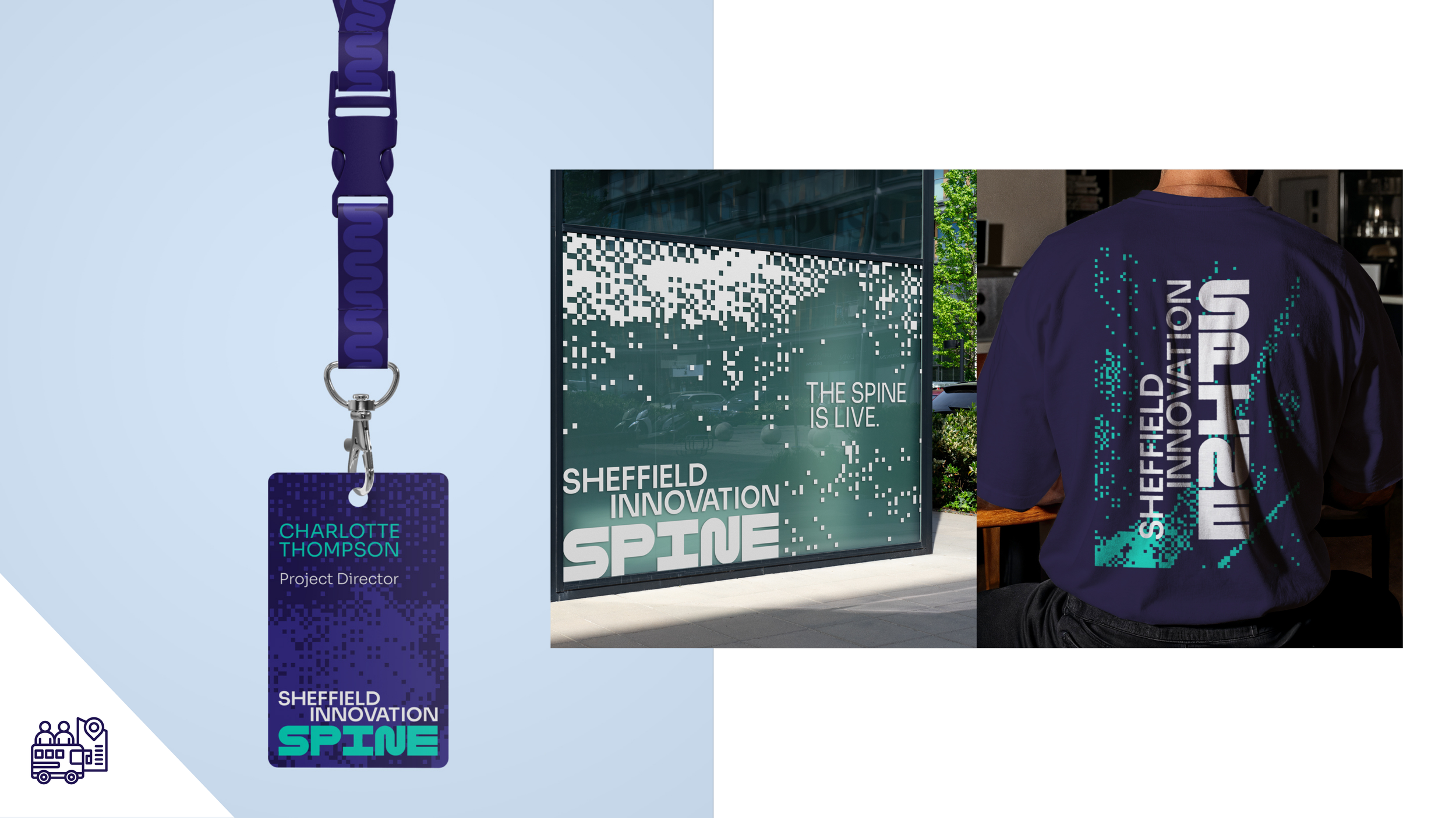 The ‘S’ and the ‘N’ in ‘Spine’ signal the physical Spine route through Sheffield city centre, connecting 5 mixed used neighbourhoods and hyper local innovation hubs.
