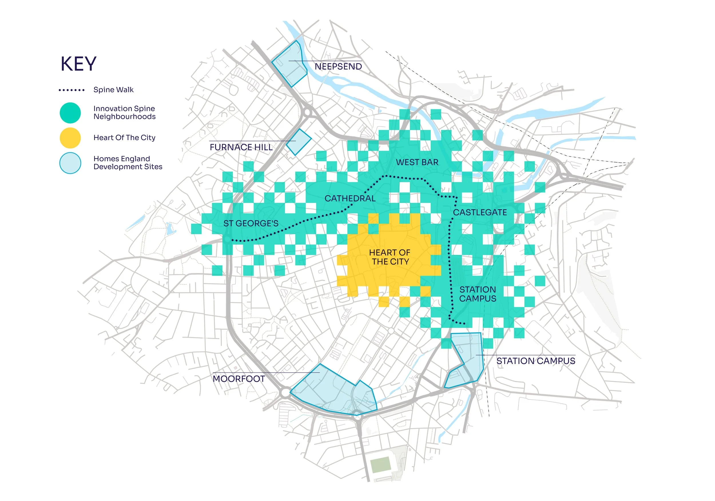 With over three million sq ft of development opportunities, the Innovation Spine supports a network of mixed-use neighbourhoods and aligns with Sheffield’s City Vision and Local Plan. These neighbourhoods have their own unique character and identity, offering tailored spaces for each stage of business growth. They are connected by the tram and active travel infrastructure to create a dynamic network of innovators.